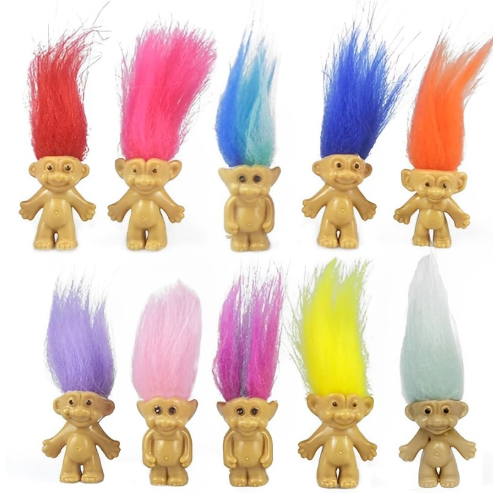 Troit 'solls were all the rage in the 1980s, with their wild, colorful hair and quirky personalities. And now, you can relive those days with this set of 10 mini troll dolls!