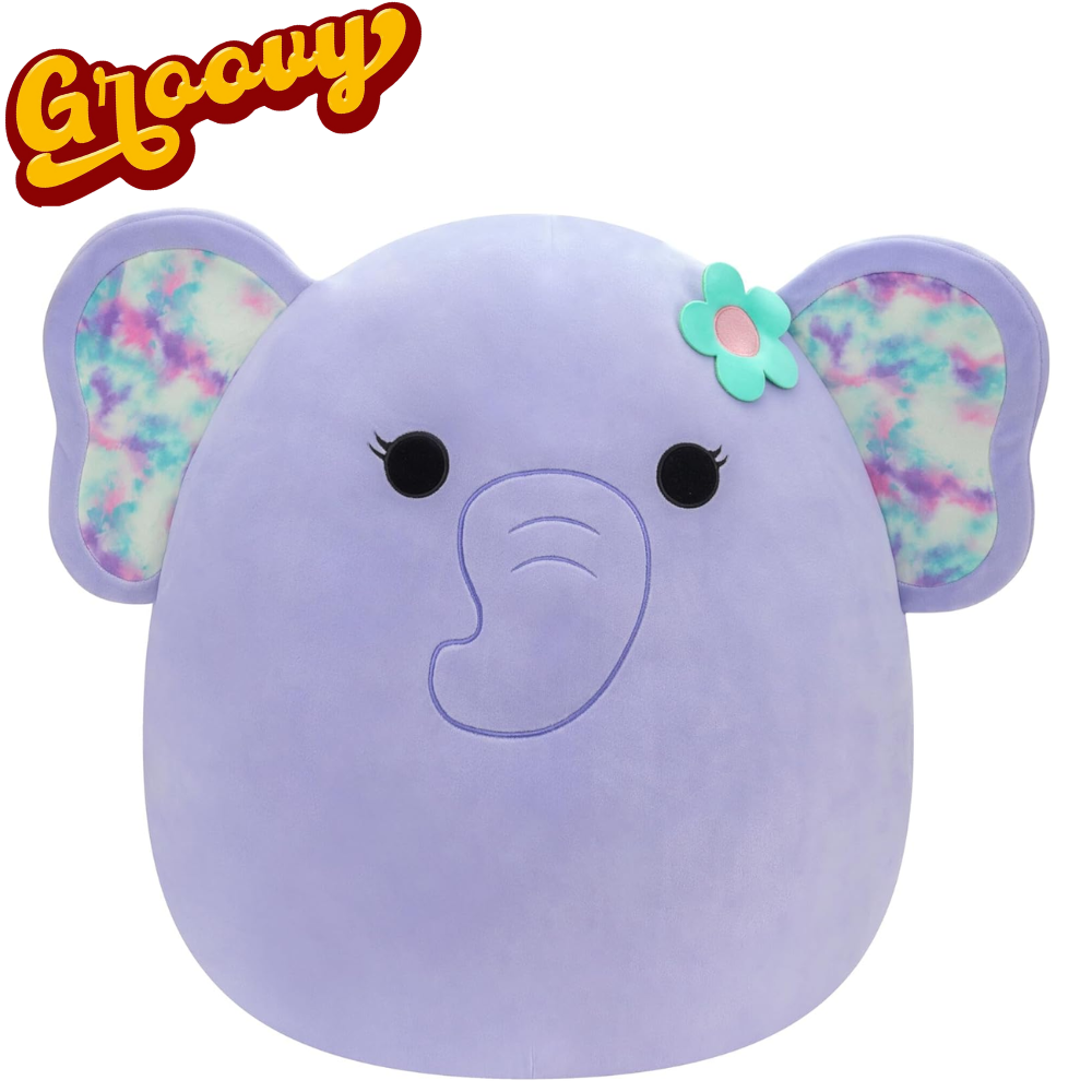 The Squishmallows Original 20-inch Anjali Purple Elephant is the perfect Large Squishmallow for all elephant lovers out there. Its unique design with tie-dye ears and flower make it stand out from other plush toys, and its large size makes it great for snuggling.