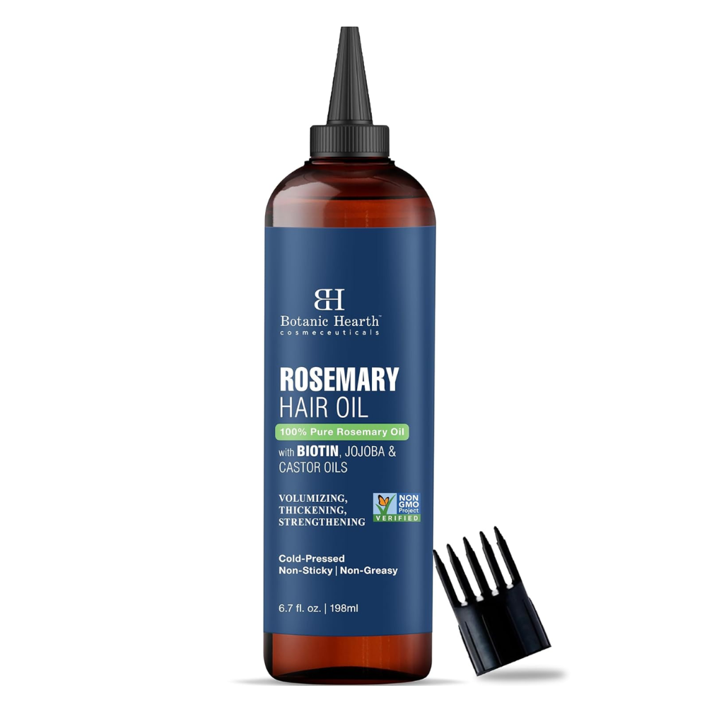 In addition to promoting hair growth and strength, the Botanic Hearth Rosemary Oil also helps combat dandruff and soothes dry scalps. Its refreshing rosemary scent adds a sensory element to your hair care routine. Its 6.7 Fluid Ounces bottle provides a generous amount of product for long-term use.