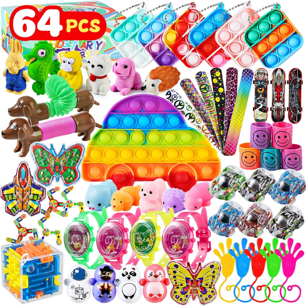 The 64PCS Party Favors for Kids is the ultimate sensory toy pack that offers various fidget toys for children to explore and play with. From stretchy strings to squishy animals, this pack has something for everyone. It's perfect for special occasions like birthday parties or as rewards in classroom settings.