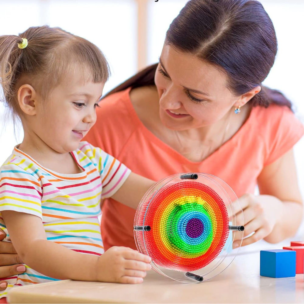 With its compact size and lightweight design, the Rainbow Pin Art Toy can be quickly taken along on trips or displayed as a colorful decoration in any room.