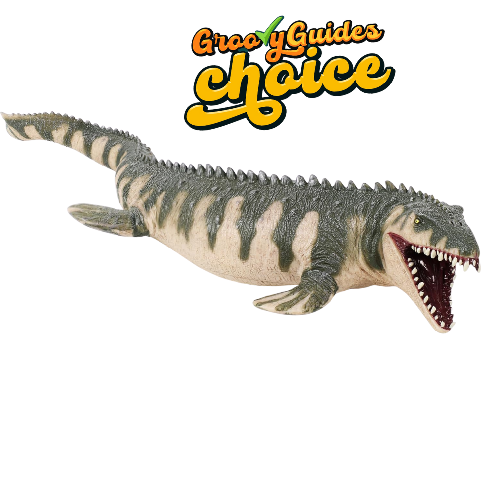 The RECUR 16" Mosasaurus Dinosaur Toy is a must-have for any dino lover. Its realistic design and hand-painted details make it look like it just swam out of the depths of the ocean. The use of safe and durable materials ensures that this toy can withstand rough play, making it perfect for kids aged three and up.